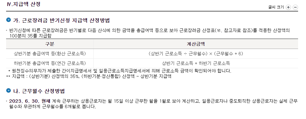 이 날에 받는 근로장려금 지급금액도 확인할수 있습니다.