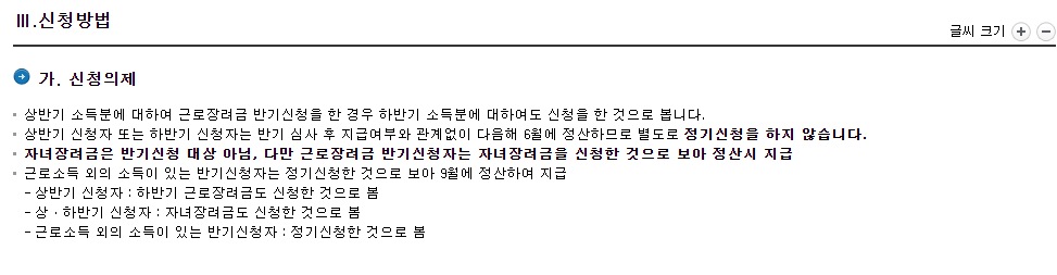 근로장려금 반기신청 안내에는 다음과 같은 신청자격과 신청방법및 참고자료등이 있습니다.